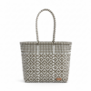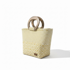 Discover elegance and sustainability with our beautifully crafted tote bag. Adorned with a unique geometric pattern, each bag is handcrafted to perfection, featuring sturdy wood handles that add a touch of natural charm. Embrace style that cares for the planet with this one-of-a-kind accessory.