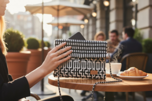 This lovely geometric crossbody bag has beautiful chain. It’s so chic and trendy, It’s super light weight and great for your next travel.