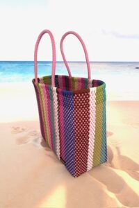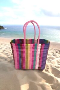 Eco-friendly colourful stripe XL sassy tote. Perfect for the person who is looking for something fun. This multi-function tote is perfect for your everyday essentials. From office to beach.